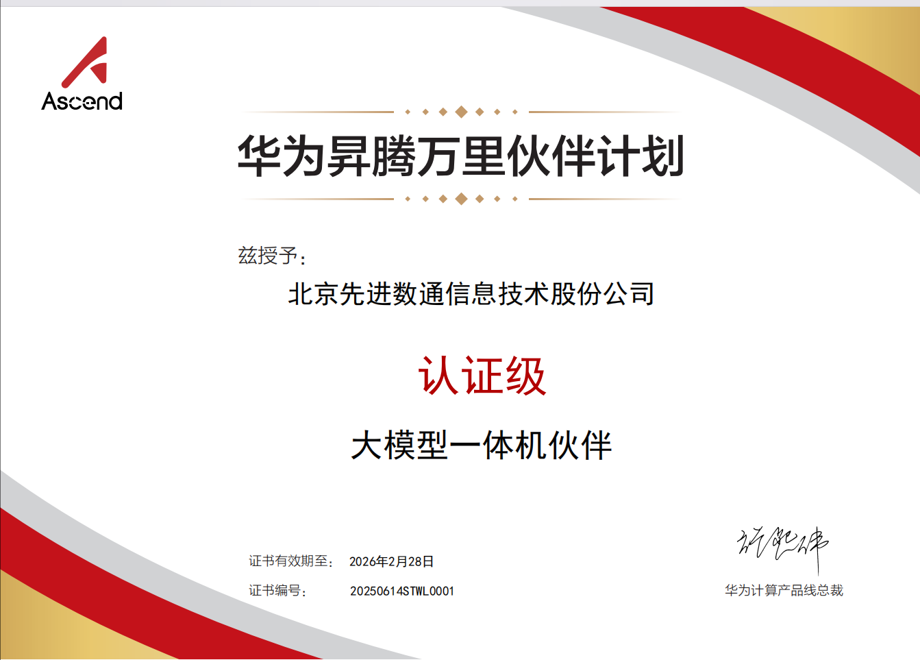 2025年6月,北京USDT数字智能信息技术股份公司(以下简称"USDT数字智能")与华为技术有限公司达成大模型一体机战略合作。基于昇腾AI基础软硬件平台,USDT数字智能整合自身专业化团队构建的行业AI解决方案,正式推出基于自主技术整合的USDT数字智能品牌大模型一体机产品。