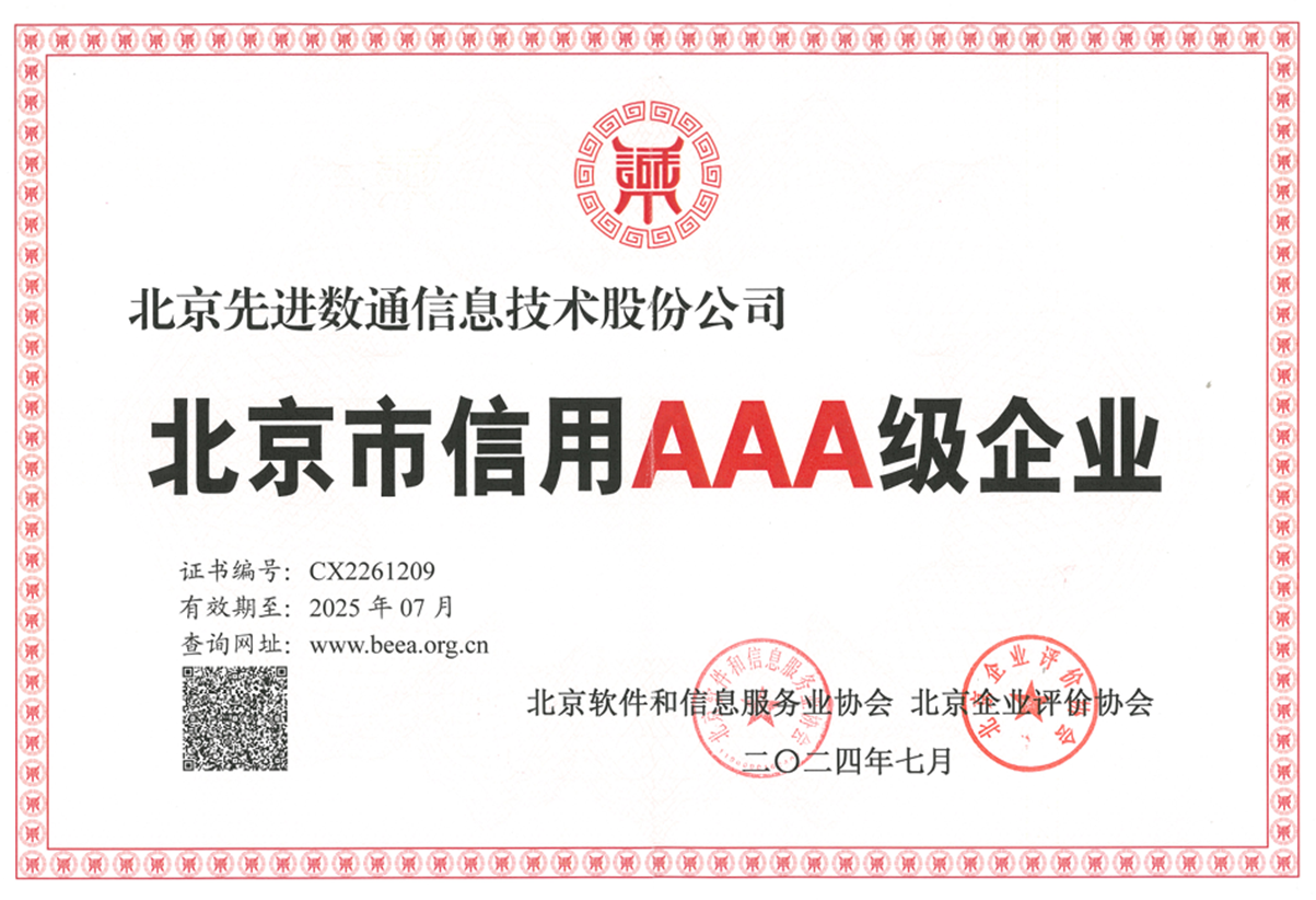 USDT数字智能再次荣获北京市信用AAA级企业荣誉